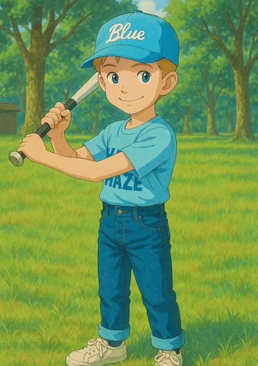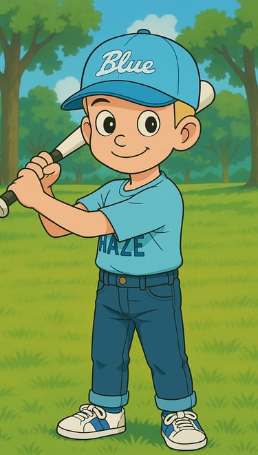 Now let's make a couple of improvements. Prompt: Show the boy's entire body including sneakers and give him a slight smile.