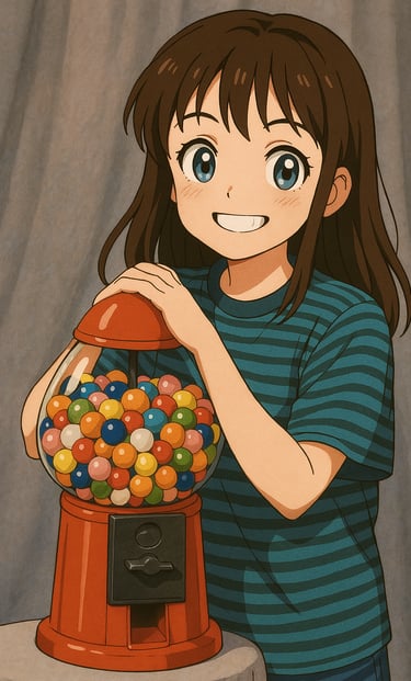 Next let's change the style. You'll need to upload the original image again so we keep the face from changing too much. Prompt: Recreate in Giblihi Style. Also improve contrast and make the colors more vibrant.